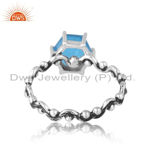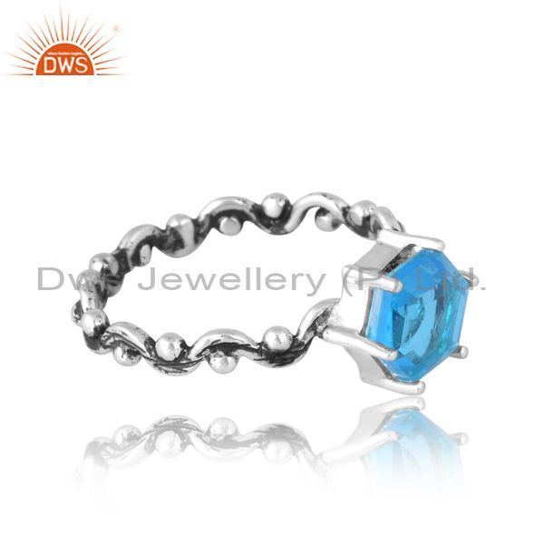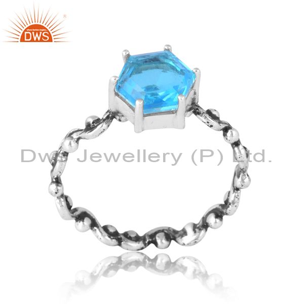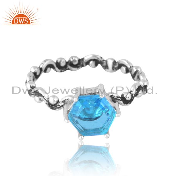 Gorgeous Oxidized Pattern Ring With Aquamarine Hexagon Cut
