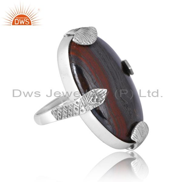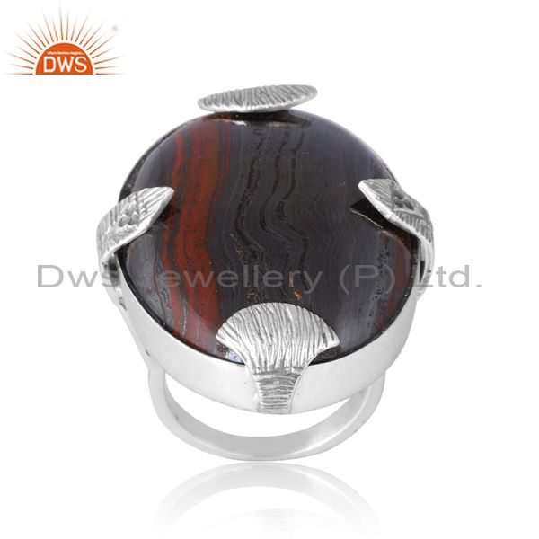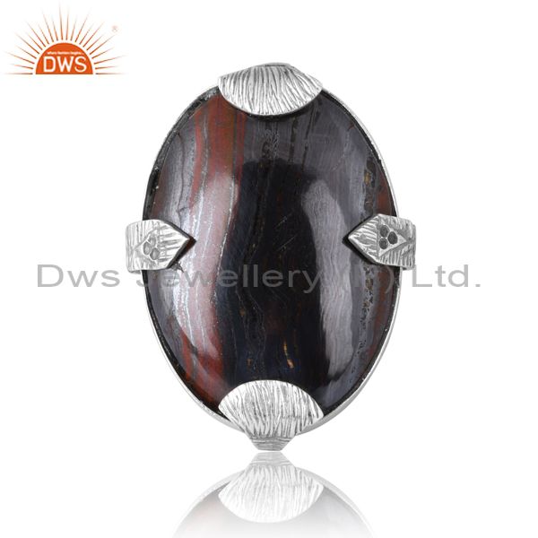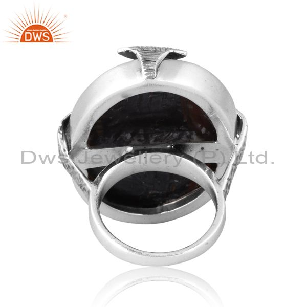 Gorgeous Oxidized Pattern Ring With Tiger Eye Oval Women