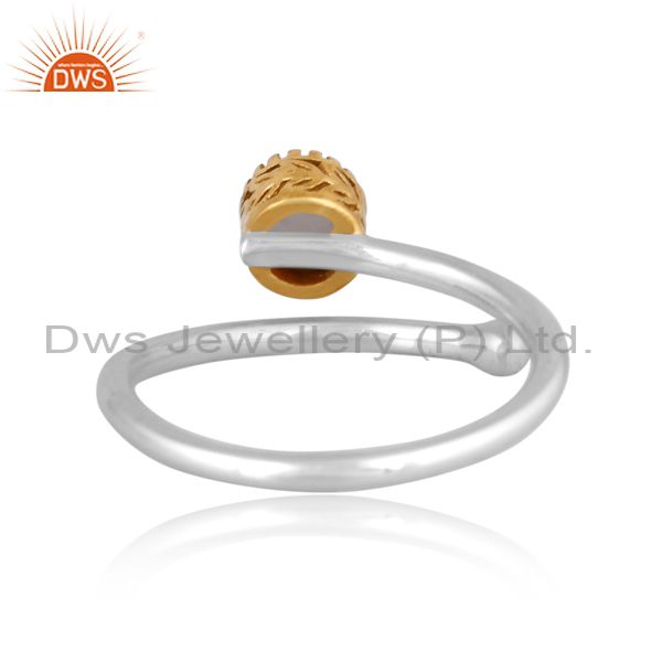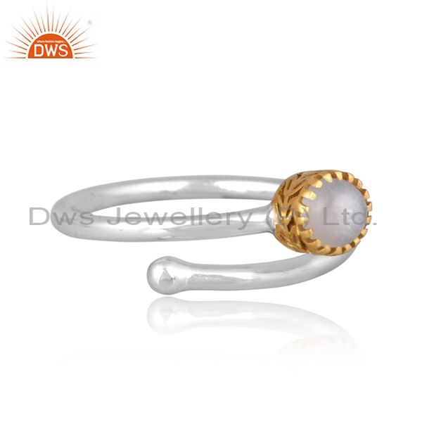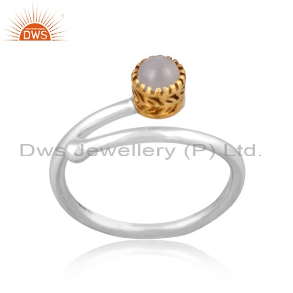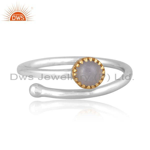 Gray Moon Stone Set Gold On Fine 925 Silver Crown Twist Ring
