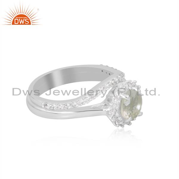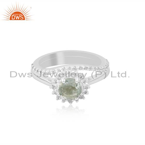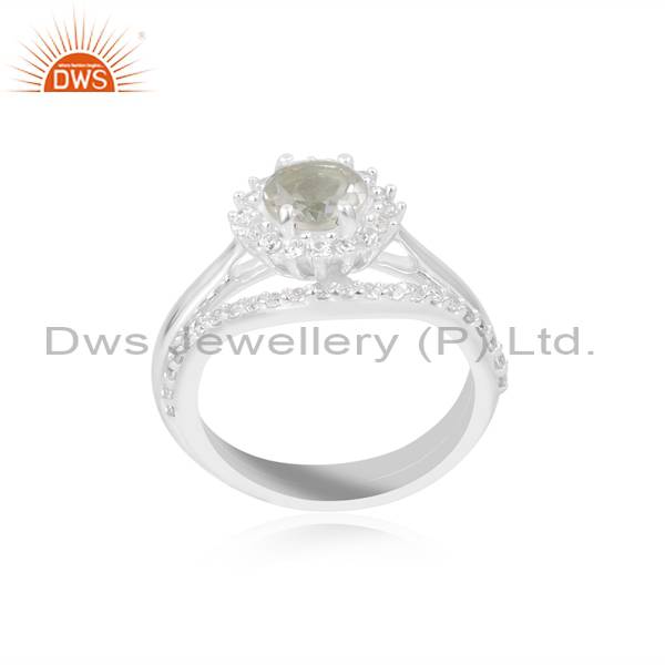 Green Amethyst & Cubic Zirconia Handcrafted Ring