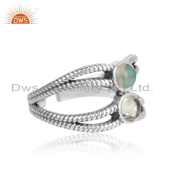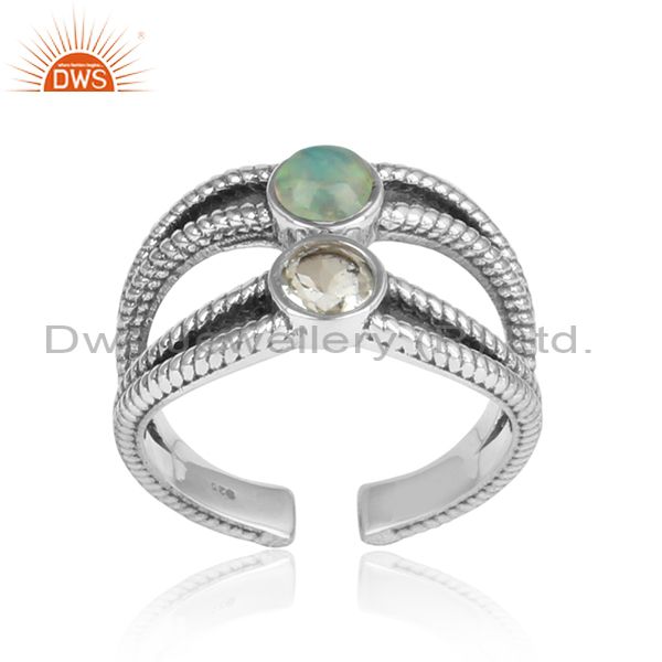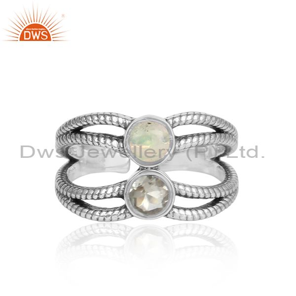 Green Amethyst & Ethiopian Opal Cabushion Silver Ring