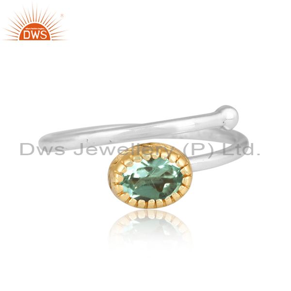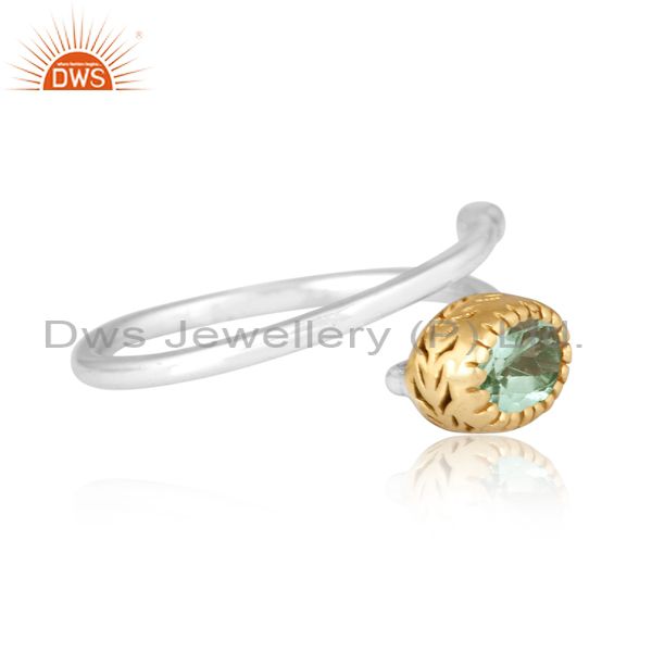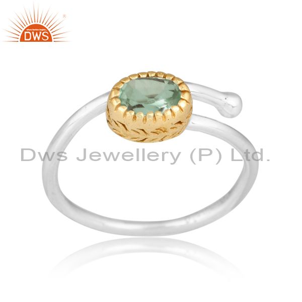Green Amethyst Gold On Fine Silver Handmade Statement Ring