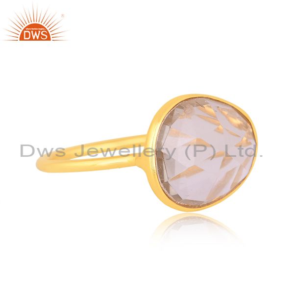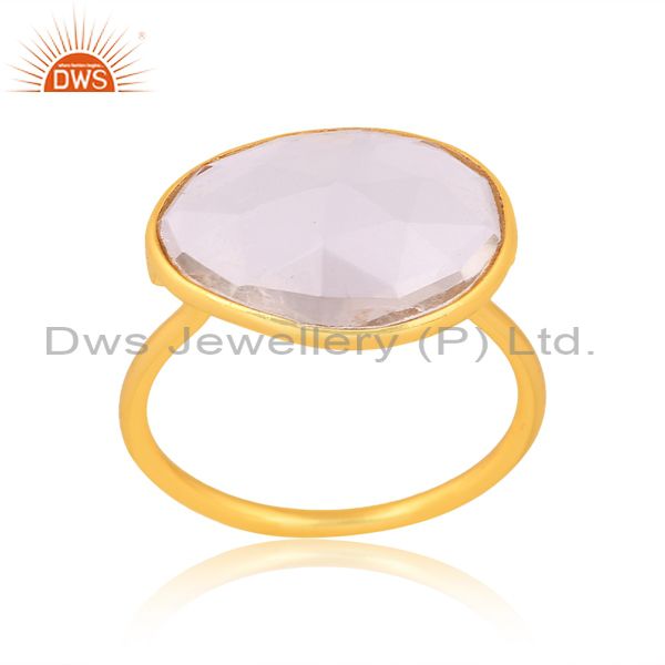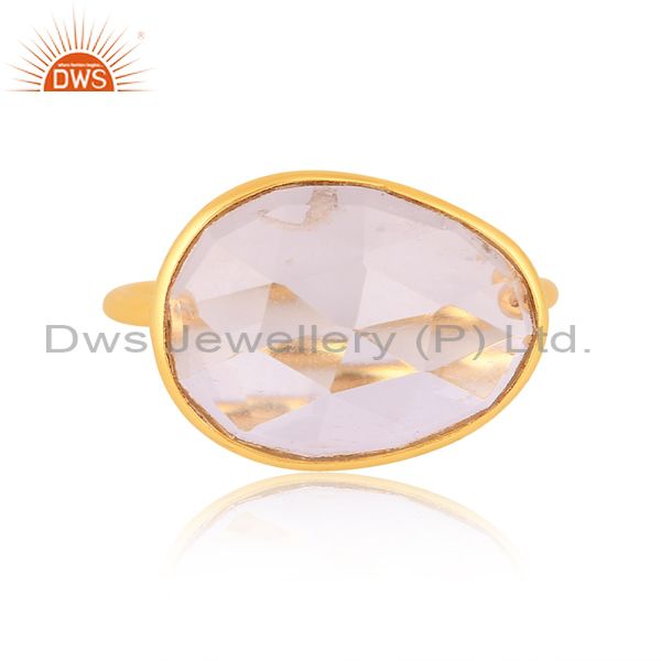 Green Amethyst Set 18K Gold On Sterling Silver Abstract Ring