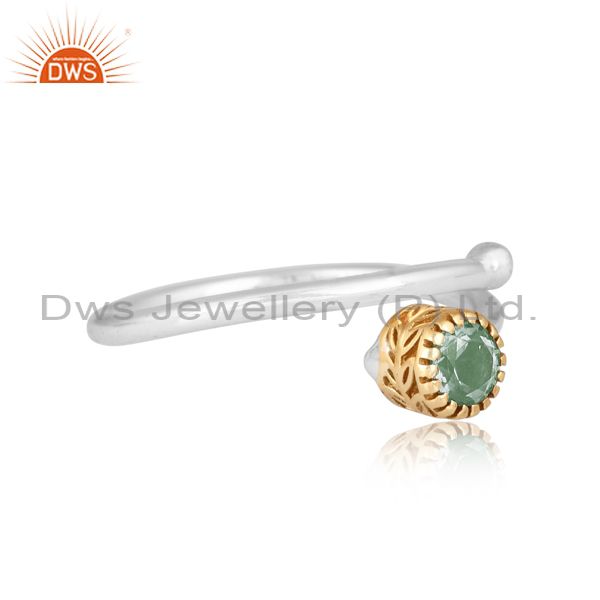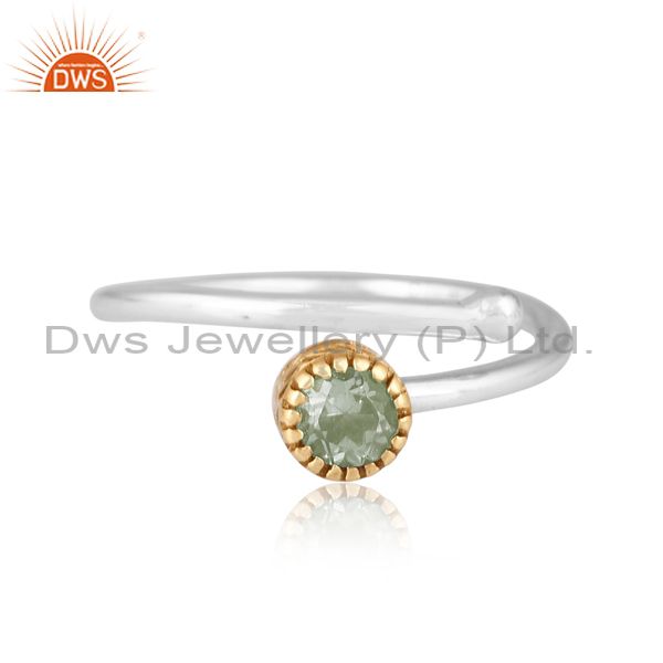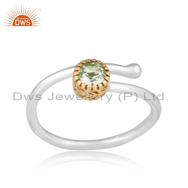 Green Amethyst Set Gold On Fine 925 Silver Crown Twist Ring