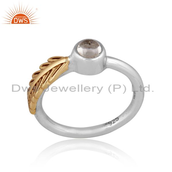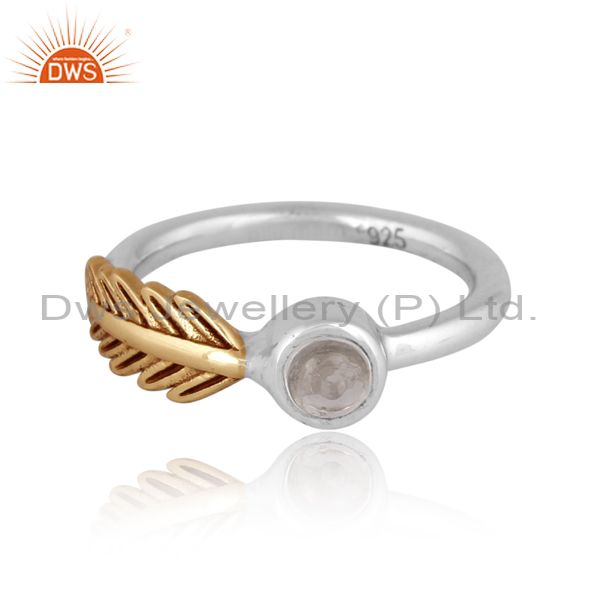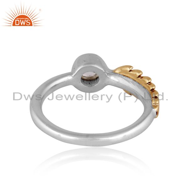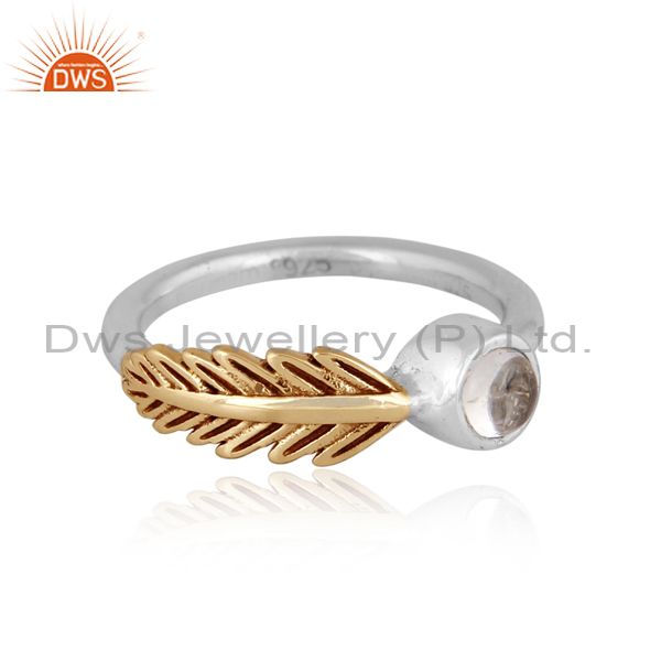 Green Amethyst Set Gold On Fine 925 Silver Leaf Design Ring