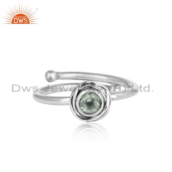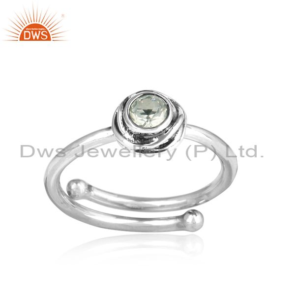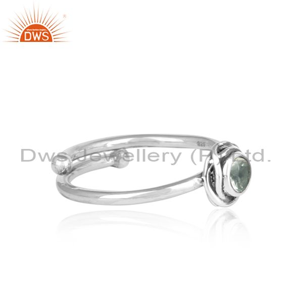 Green Amethyst Set In Sterling Silver Oxidized Crown Ring