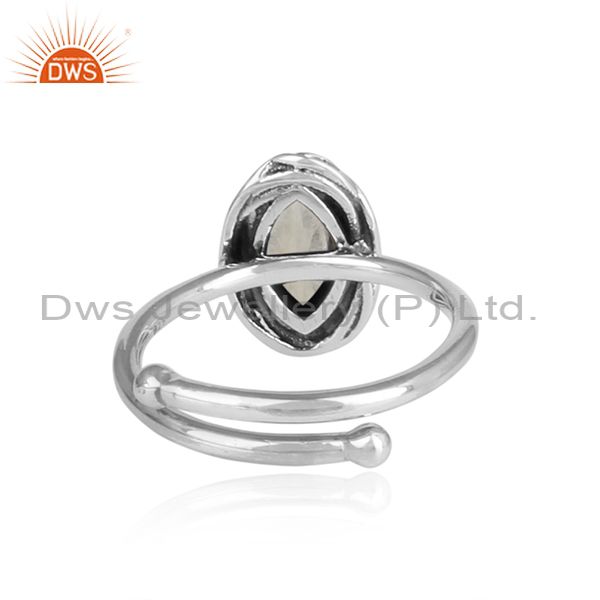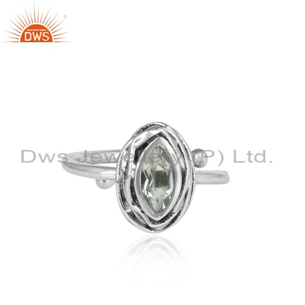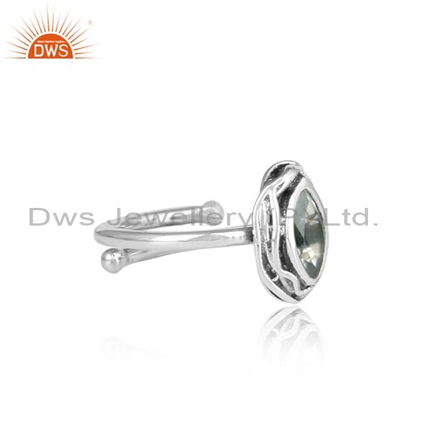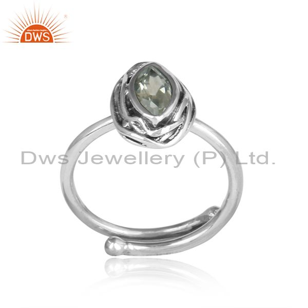 Green Amethyst Set Sterling Silver Oxidized Adjustable Ring