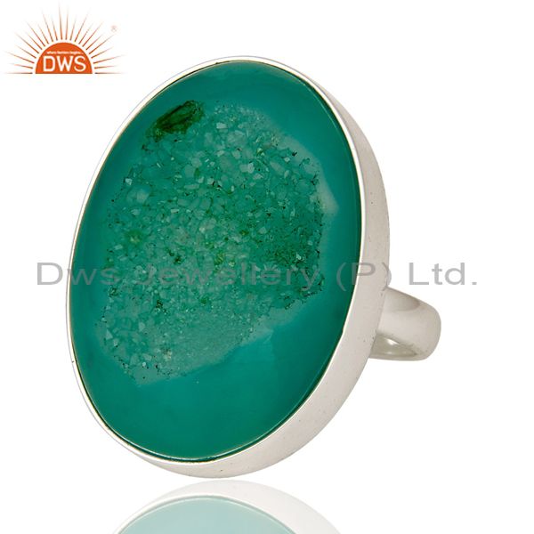 Green Druzy Agate Sterling Silver Bezel-Set Statement Ring