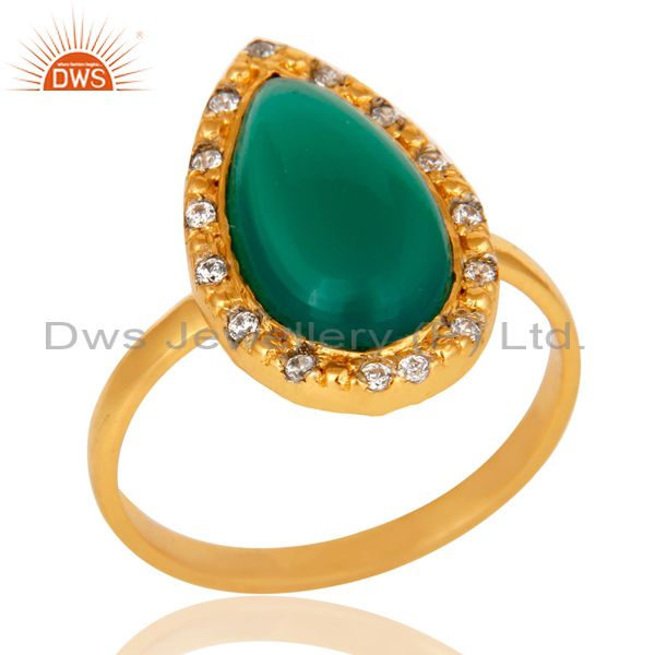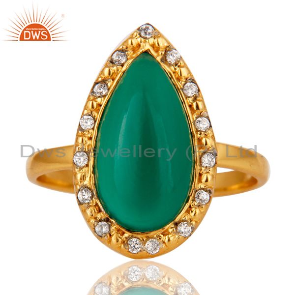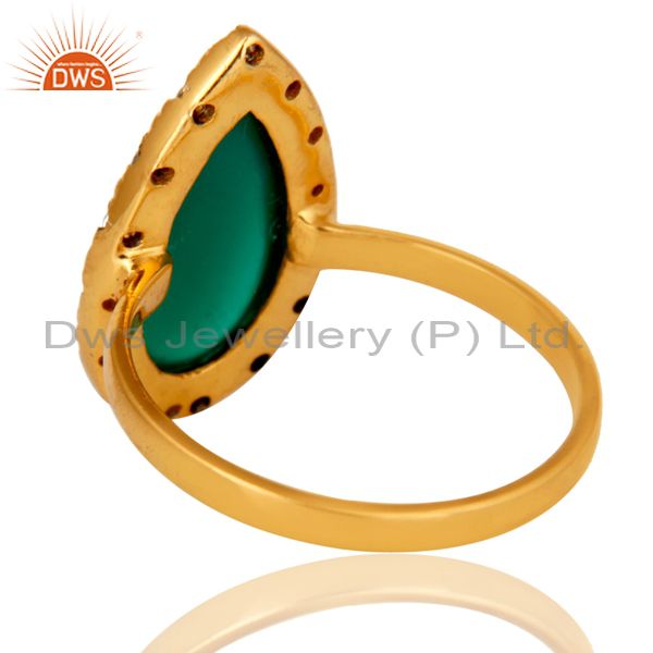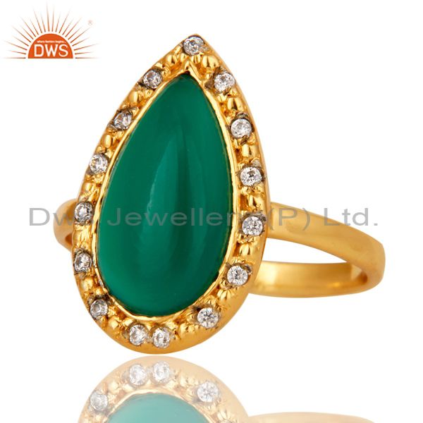 Green Onyx and White Zircon 18K Gold Plated Handmade Statement Ring