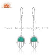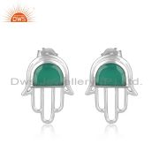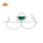 Green Onyx Coin Set Fine Sterling Silver Hamsa Ring
