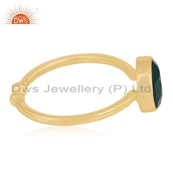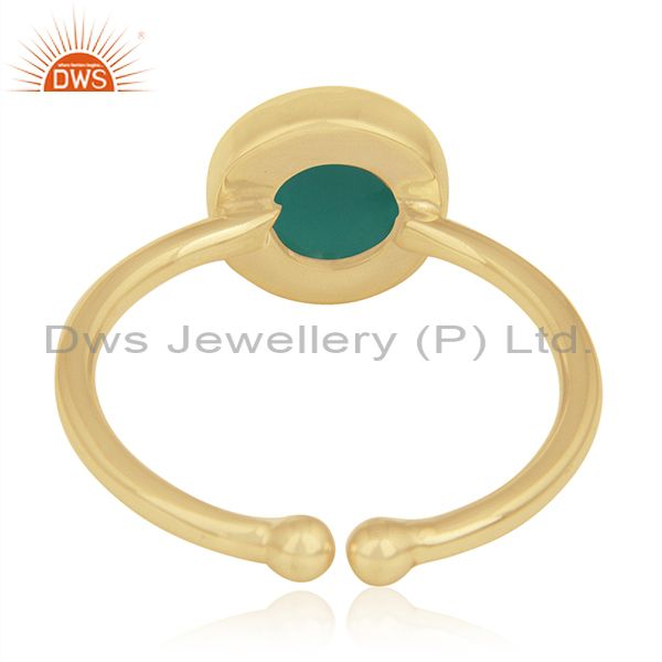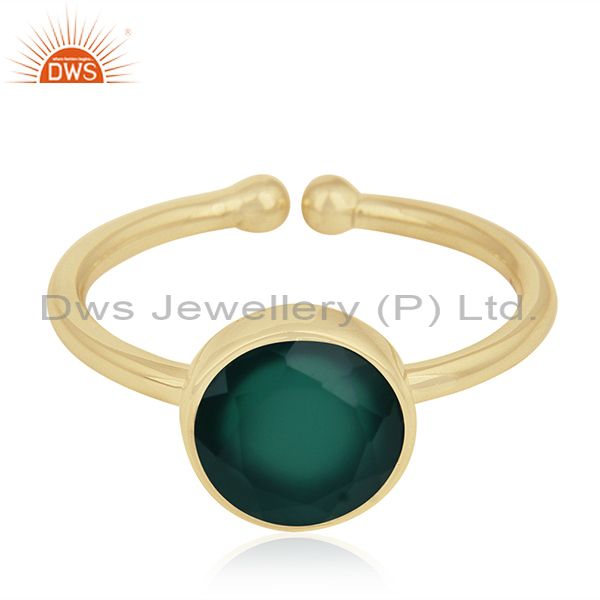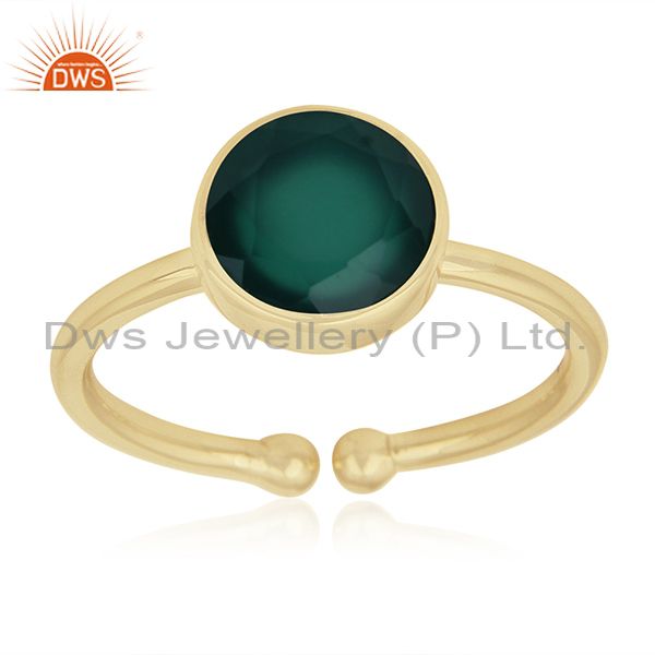 Green Onyx Gemstone 925 Sterling Silver Gold Plated Ring Wholesale