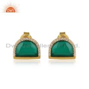Green Onyx Half Moon Ring Cz Studded 14K Gold Plated Sterling Silver Ring