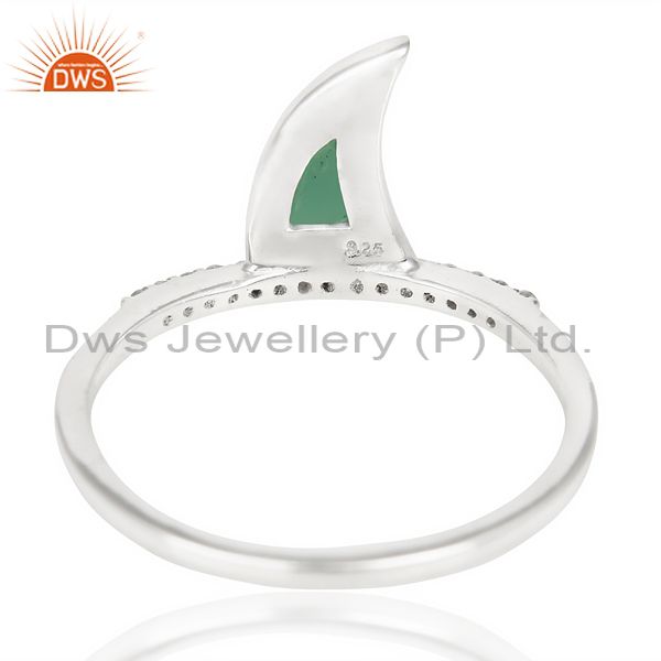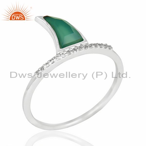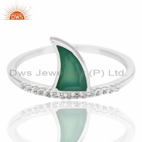 Green Onyx Horn Cz Studded Adjustable 92.5 Sterling Silver Ring