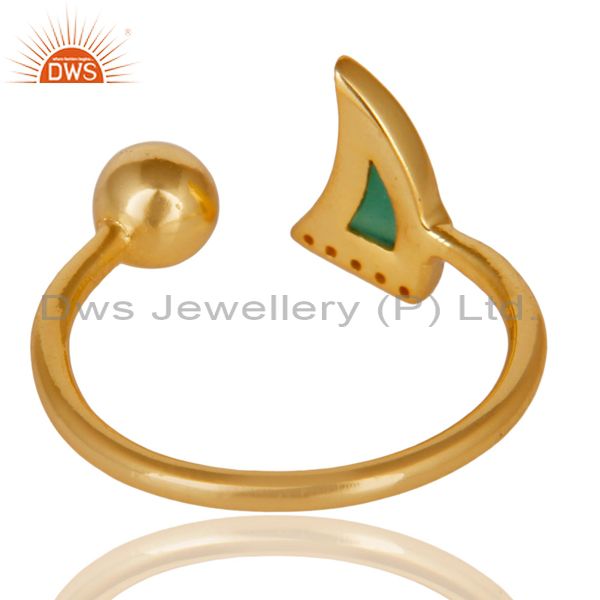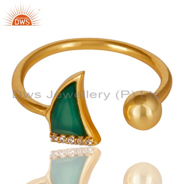Green Onyx Horn Ring Cz Studded Ball Ring Gold Plated Sterling Silver Ring
