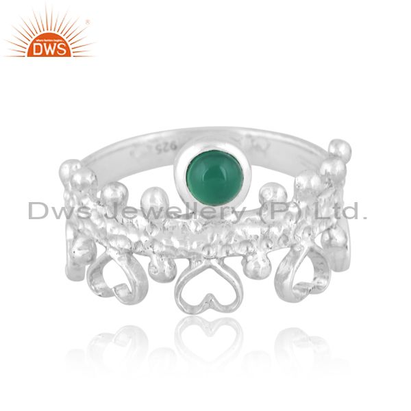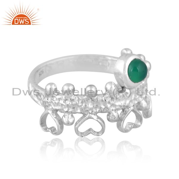 Green Onyx Set Fine Silver Handmade Heart Charm Ethnic Ring