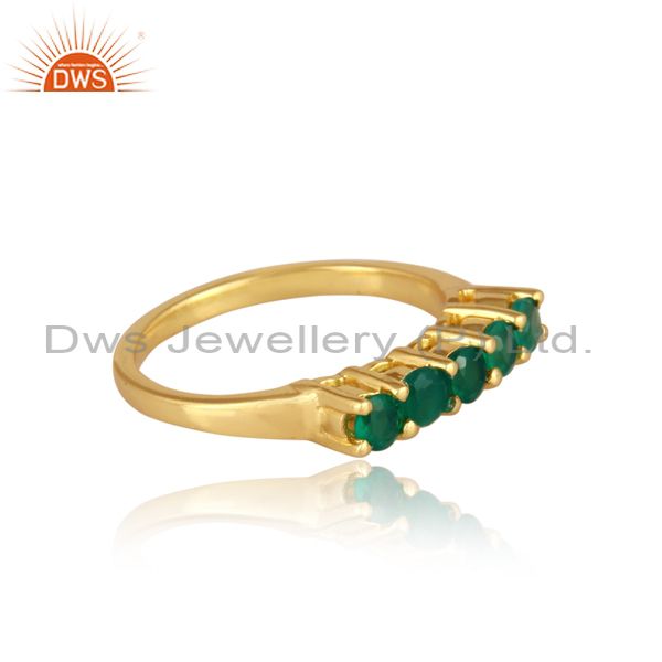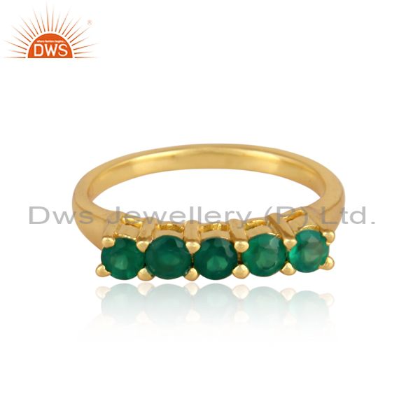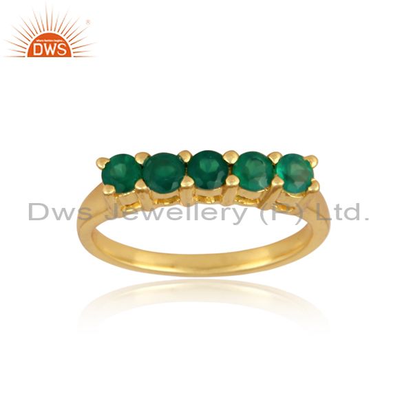 Green Onyx Set Gold On 925 Silver Classic Statement Ring
