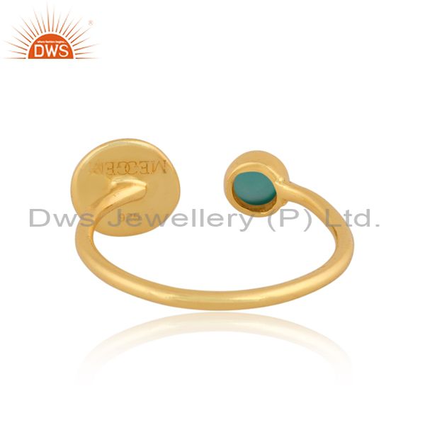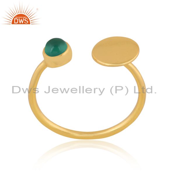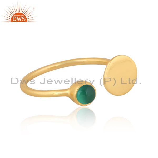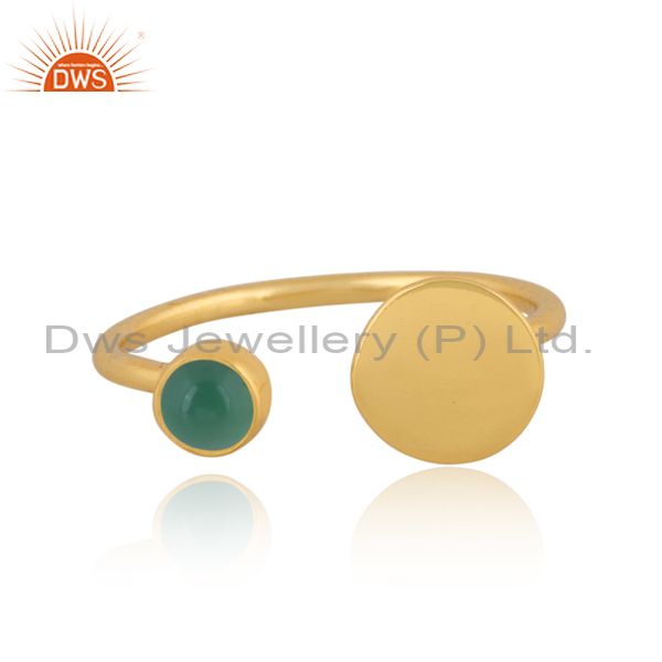 Green Onyx Set Gold On 925 Silver Statement Open Fancy Ring