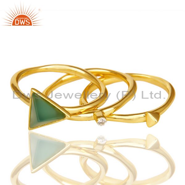 Green Onyx Triangle Cut Gemstone Stacking 14K Gold Plated 92.5 Silver Ring