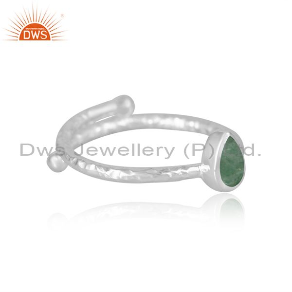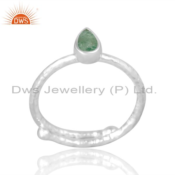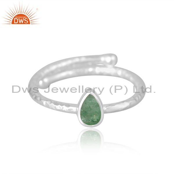 Green Strawberry Pear Cut Band For Women In Silver Metal