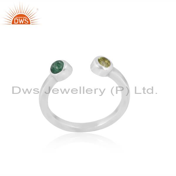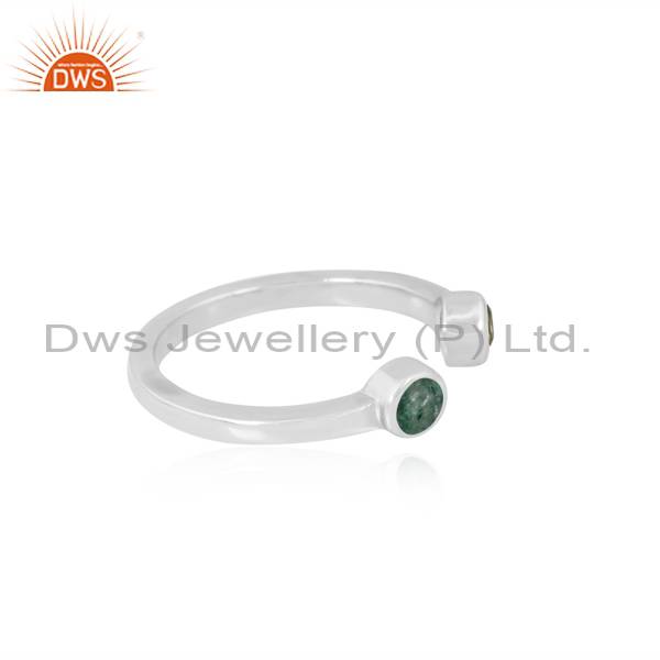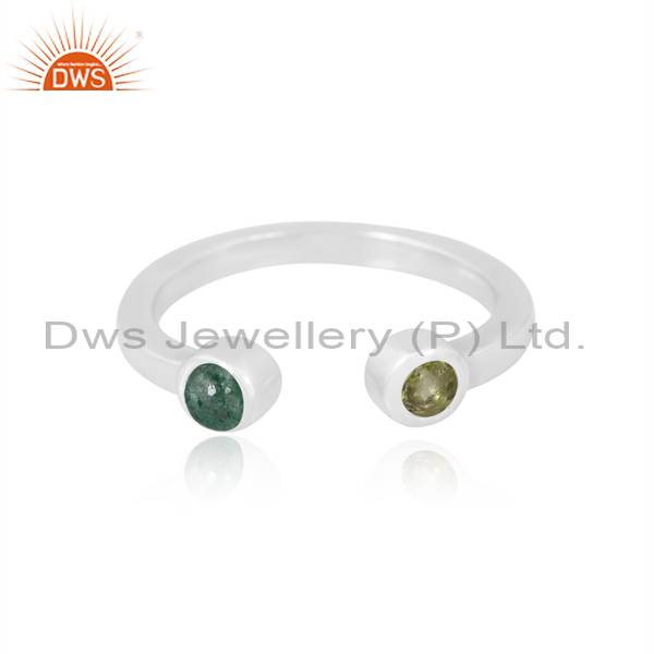 Green Strawberry Quartz & Peridot Ring - Cabushion Round Cut