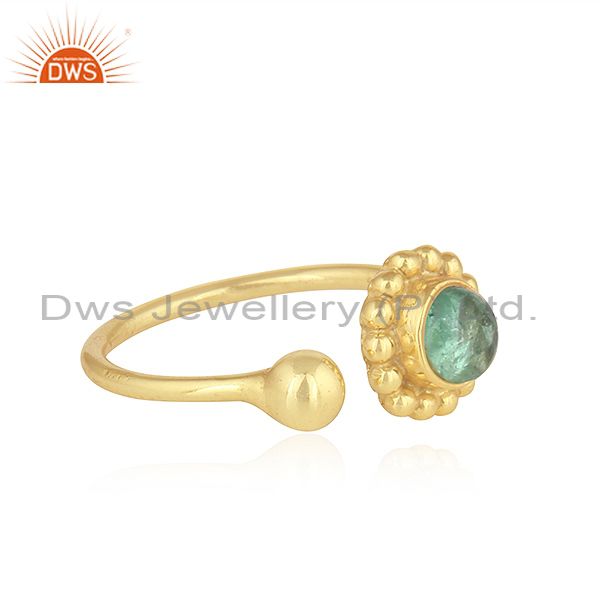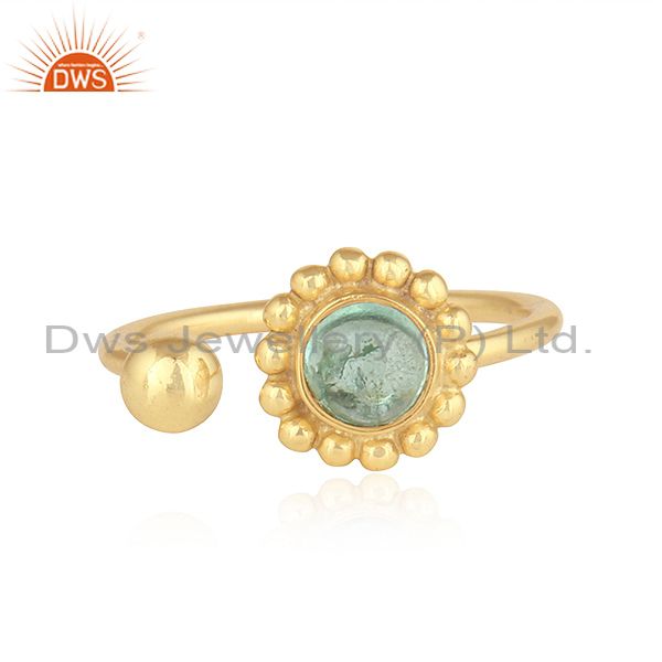 Green Tourmaline Gemstone 18K Designer Gold Plated Silver Ring Jewelry