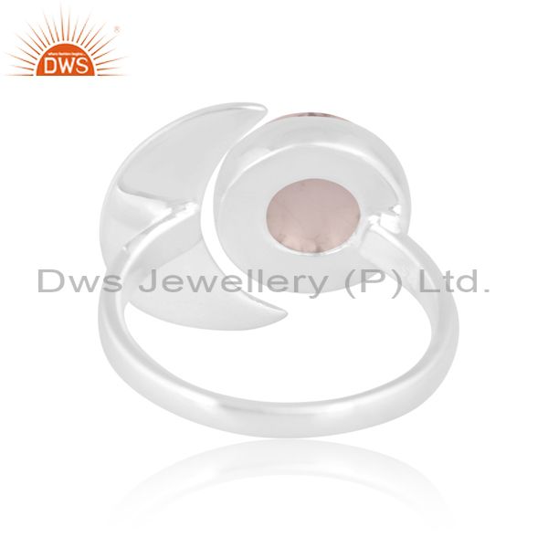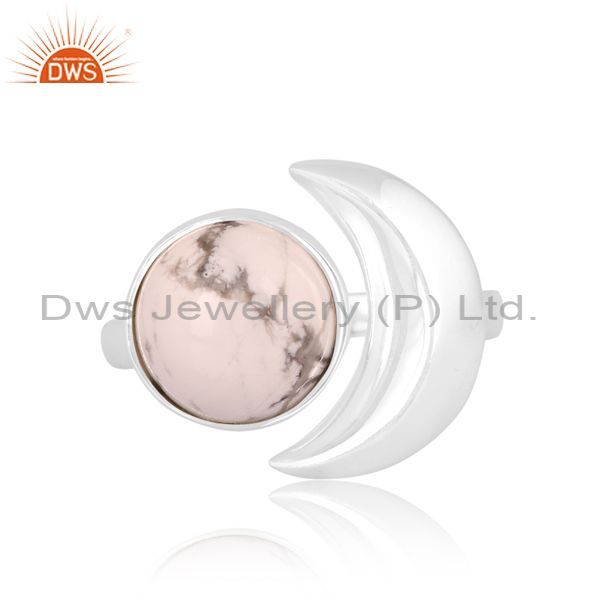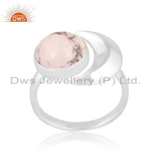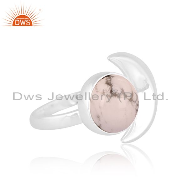 Half-Moon Shaped Silver Ring With Howlite Cabochon Round Gem