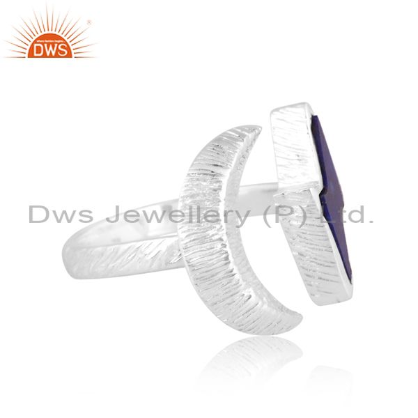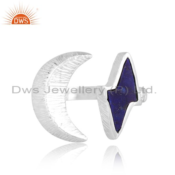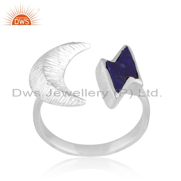 Half-Moon Shaped Silver Ring With Lapis Thunder Shaped Stone