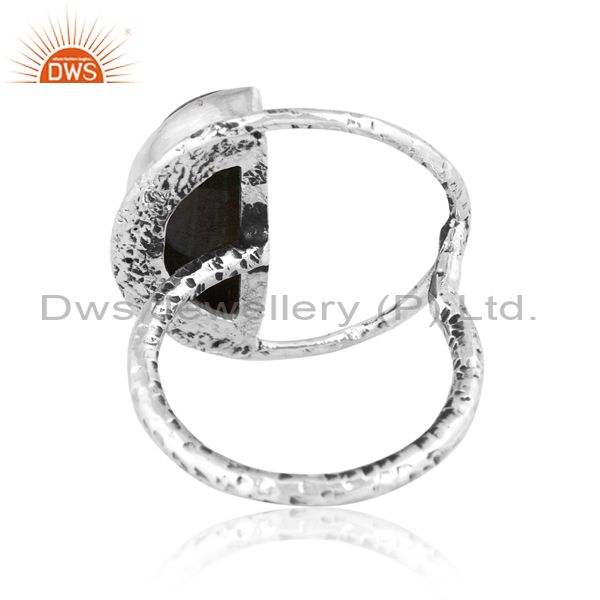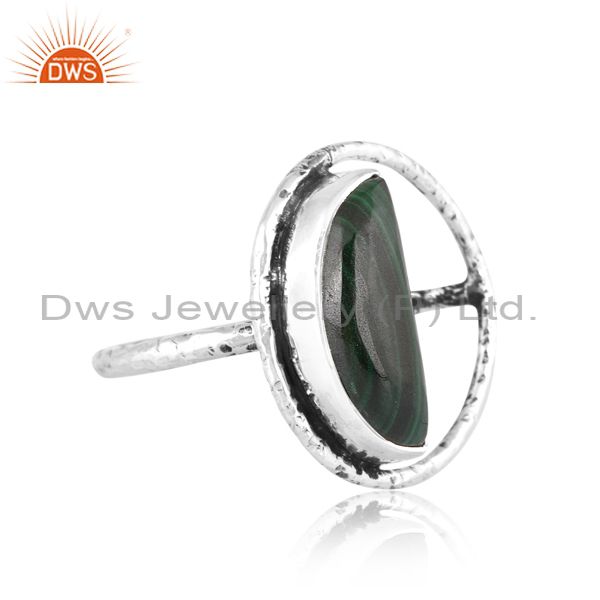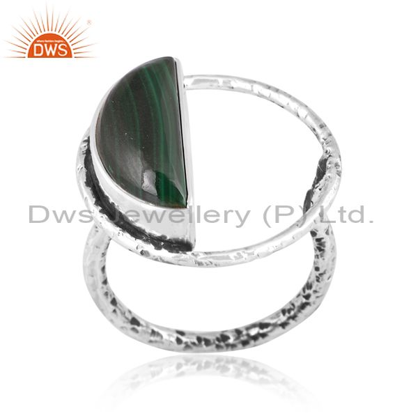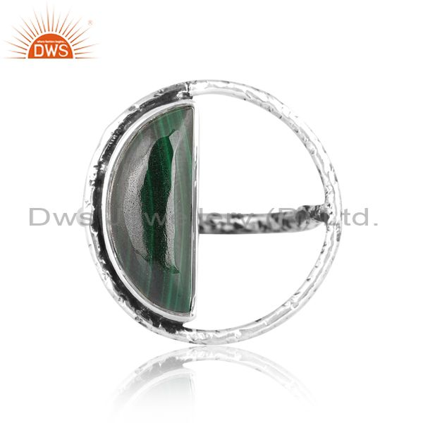 Half-Moon Silver Ring With Malachite Cabochon Stone