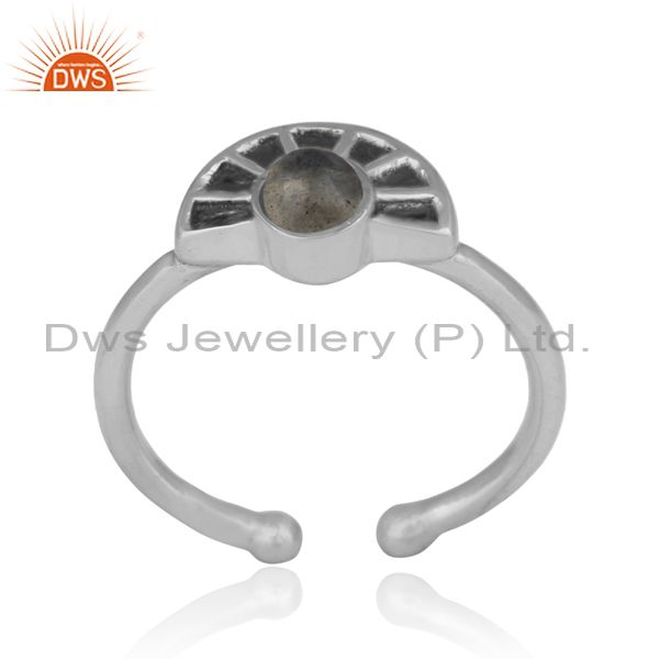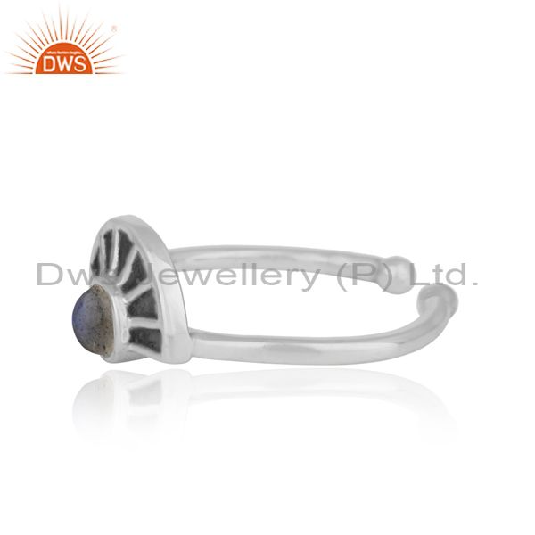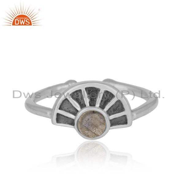 Half Moon Texture Designer Labradorite Ring in Oxidized Silver 925
