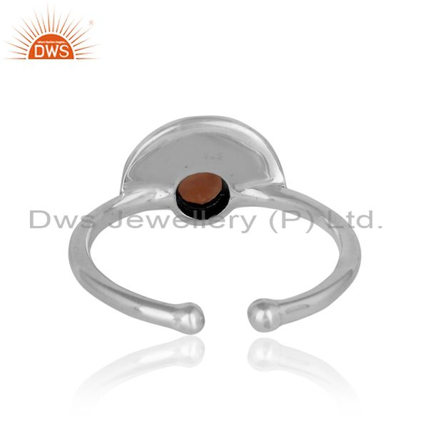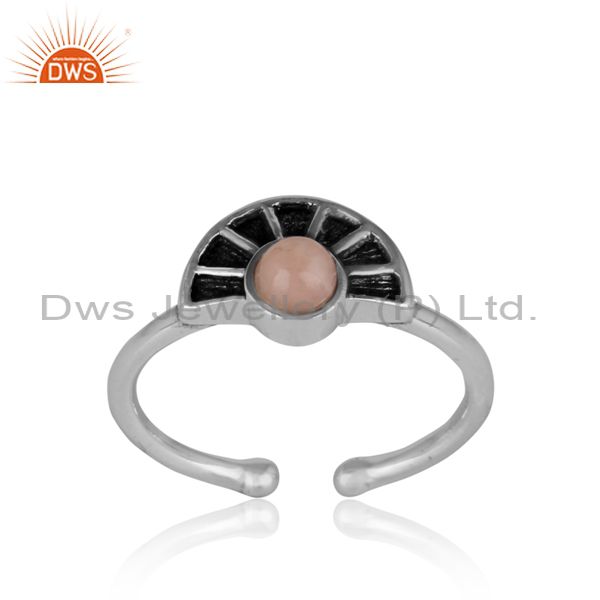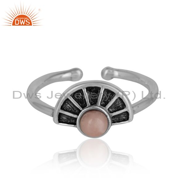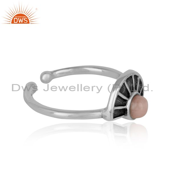Half Moon Texture Designer Pink Opal Ring in Oxidized Silver 925