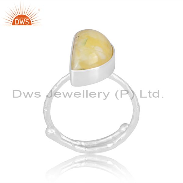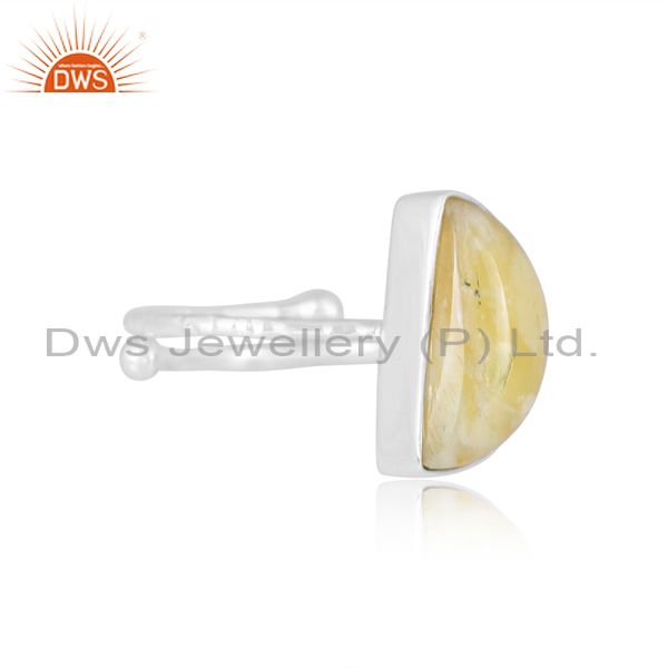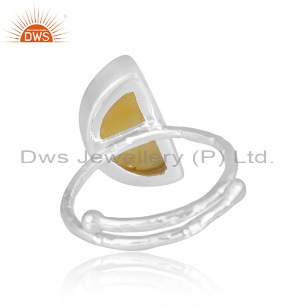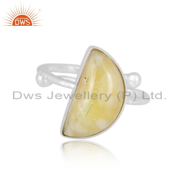 Halfmoon Yellow Opal Set Fine Sterling Silver Handmade Ring