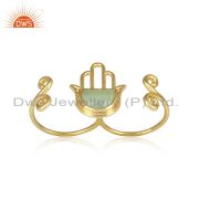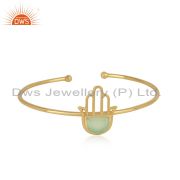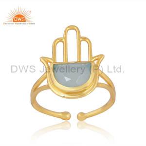 Hamsa Designer Yellow Gold on Silver Ring with Prehnite Chalcedony