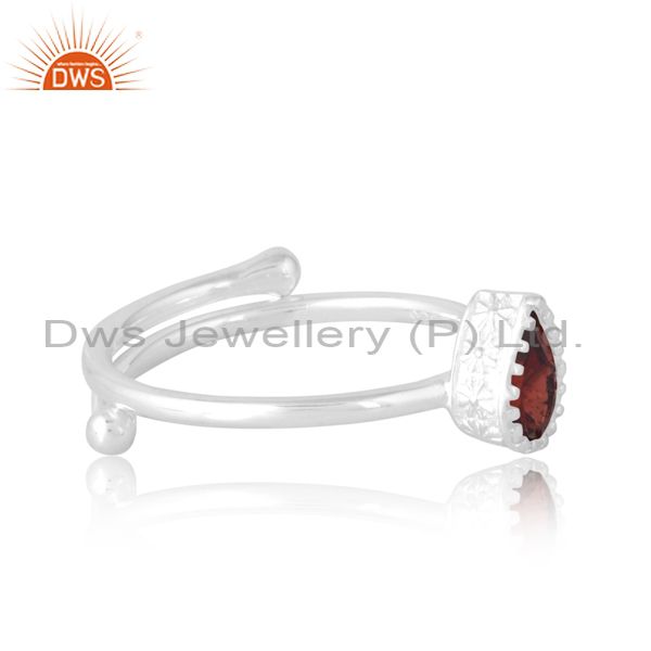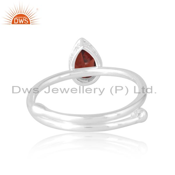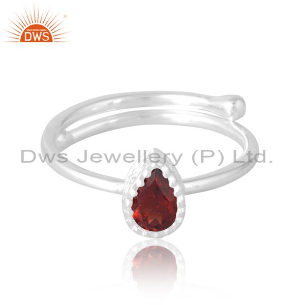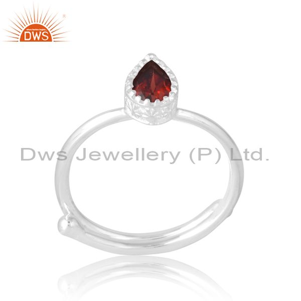 Hand Carved Silver Band In Garnet Pear Cut Gift For All