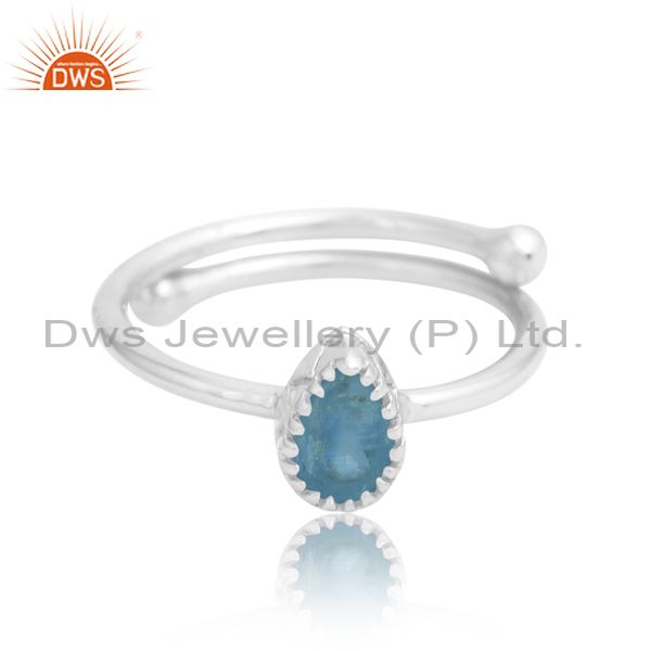 Hand Carved Silver Band In Pear Kyanite Stone Gift For All