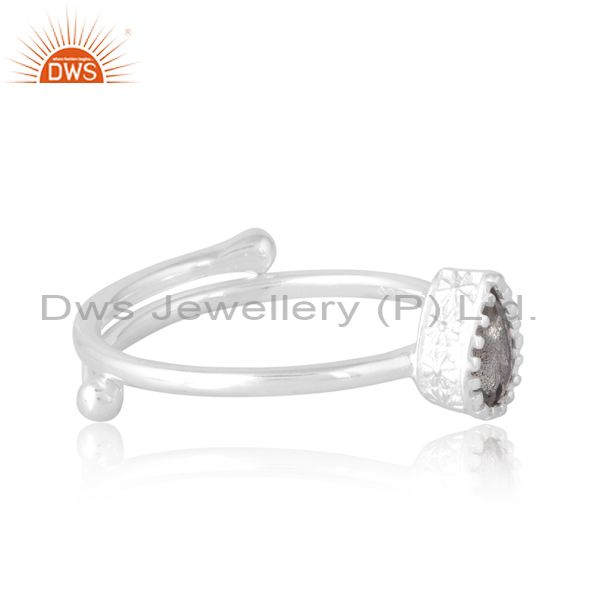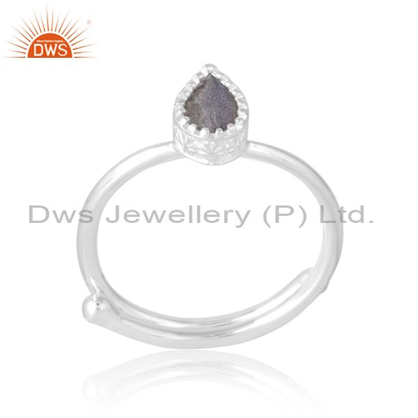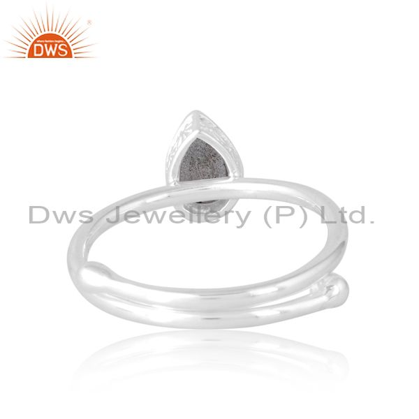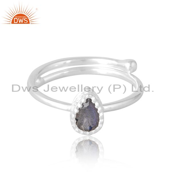 Hand Carved Silver Band In Pear Labradorite Gift For All