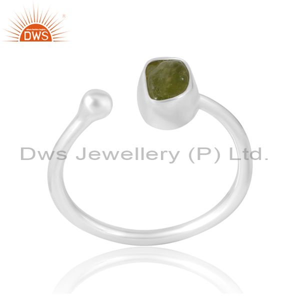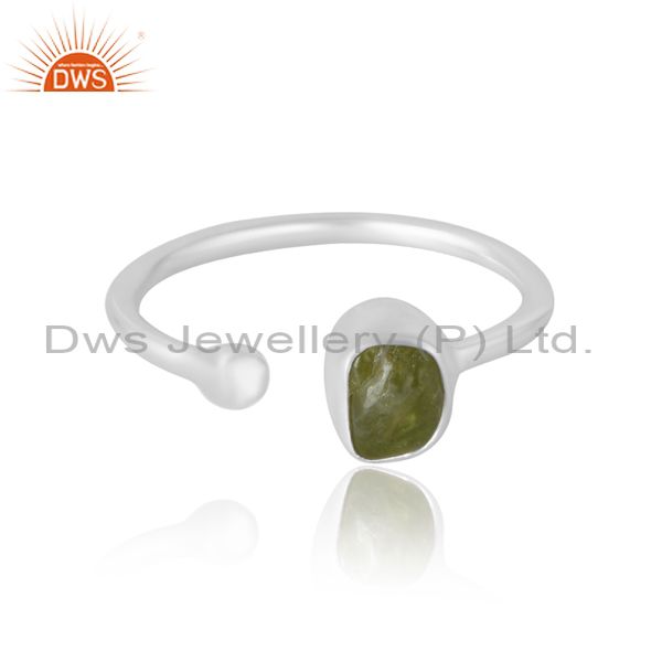 Hand Carved Silver Band In Peridot Rough Stone Gift For All