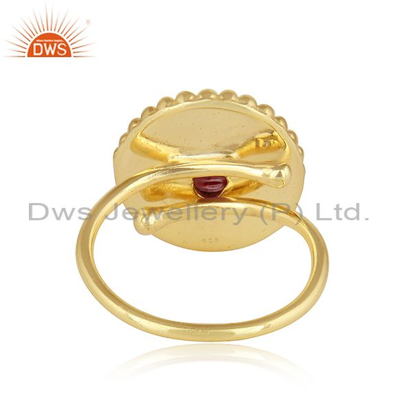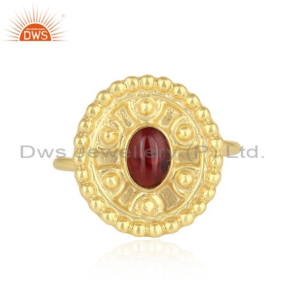 Hand Craved Gold Plated 925 Silver Garnet Gemstone Ring Jewelry