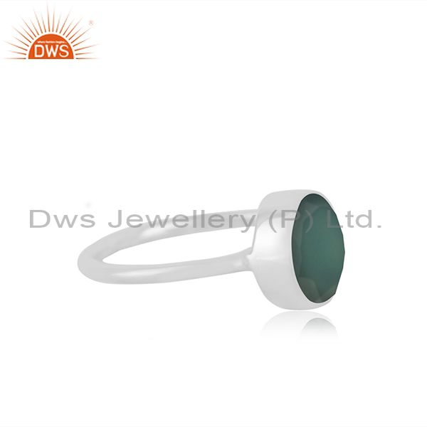 Handamde Design Fine Silver Natural Aqua Chalcedony Gemstone Rings