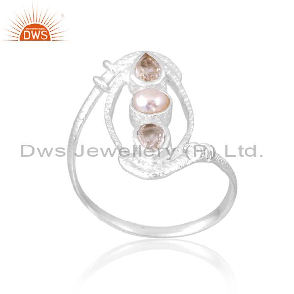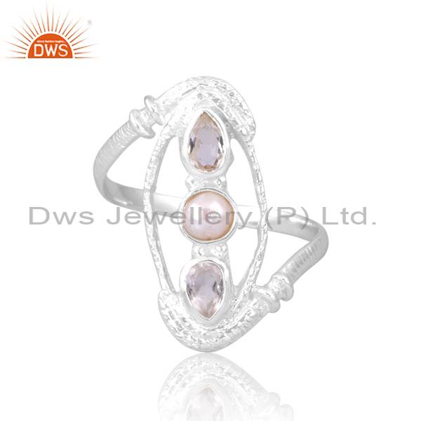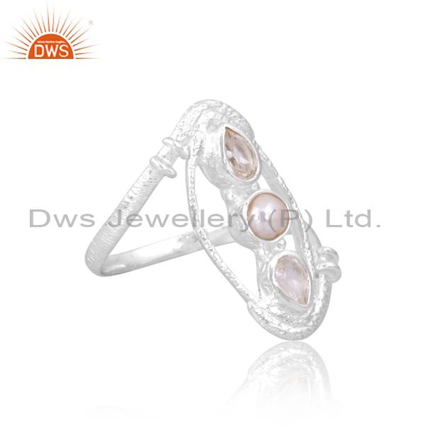 Handcrafted 925 Silver Ring With Quartz Crystal & Pearl