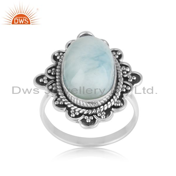 Handcrafted 925 Sterling Silver Larimar Gemstone Designer Ring Wholesaler Jaipur