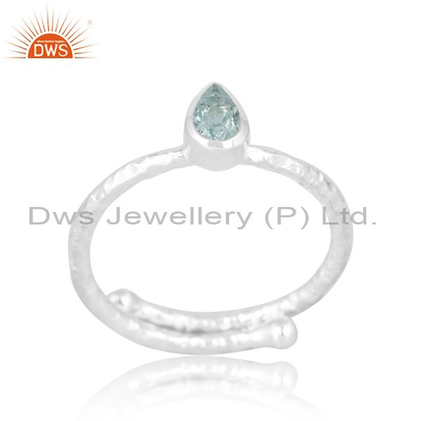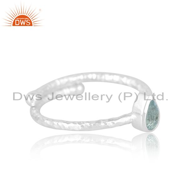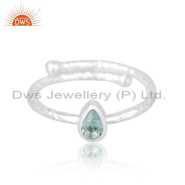 Handcrafted Aquamarine Pear Cut Wire Ring Unisex In Silver