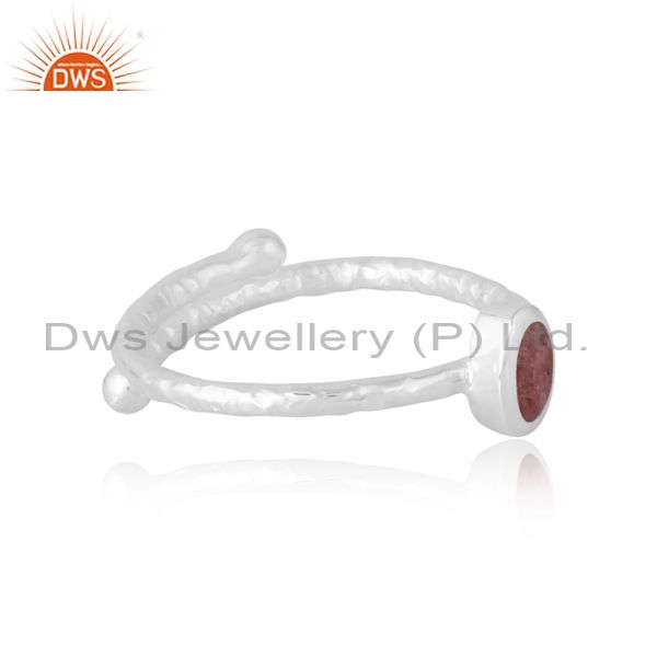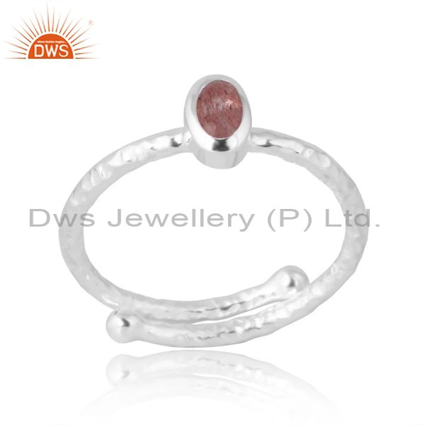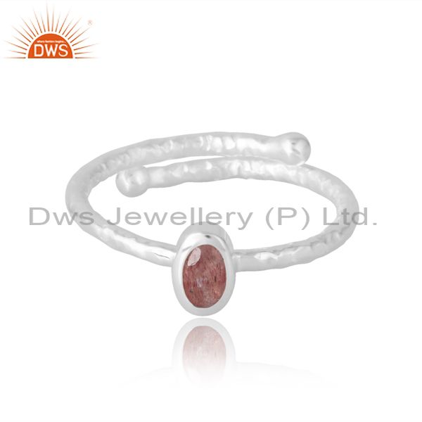 Handcrafted Band With Oval Strawberry Quartz Proposal Silver