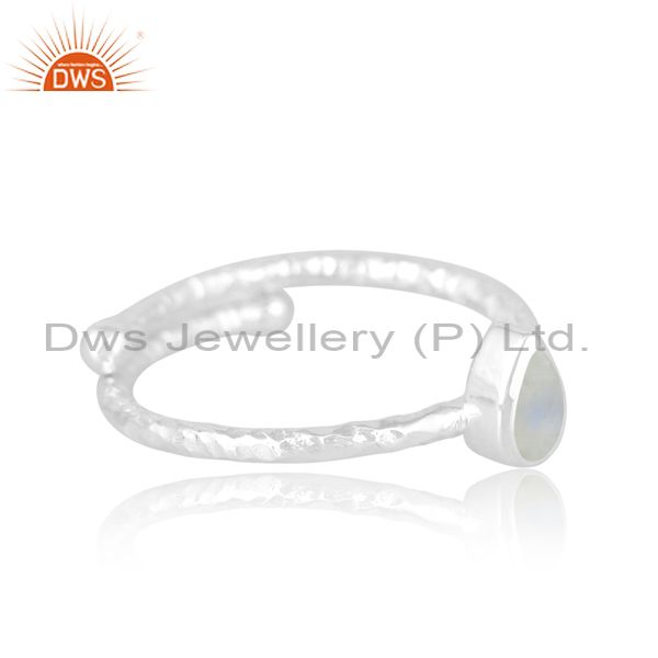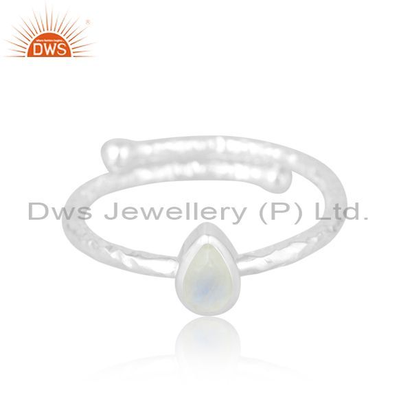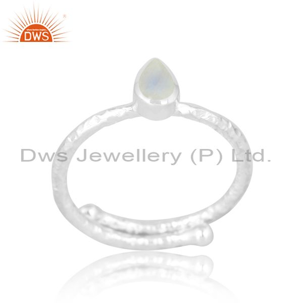 Handcrafted Band With Pear Rainbow Moonstone Silver Women