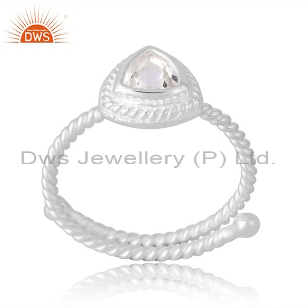 Handcrafted Chrystal Trillion Cut Wire Ring Unisex Silver