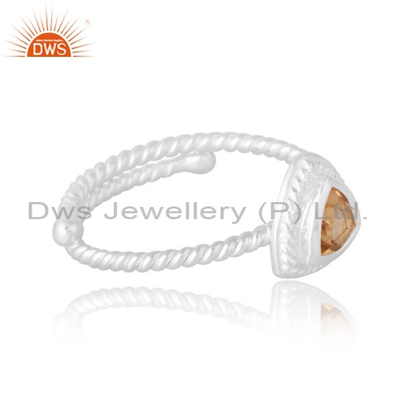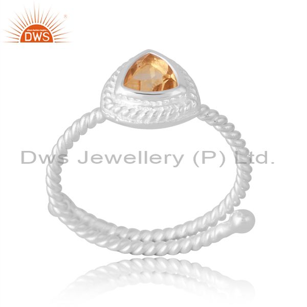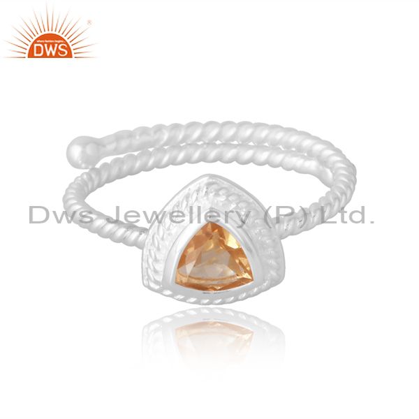 Handcrafted Citrine Trillion Cut Wire Ring Unisex In Silver