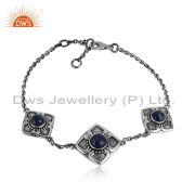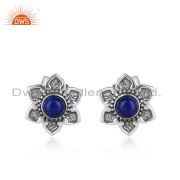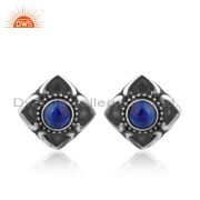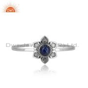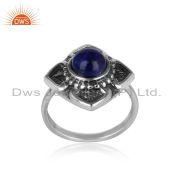 Handcrafted Classic Ring in Oxidised Silver 925 with Natural Lapis