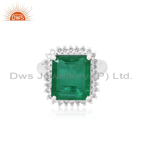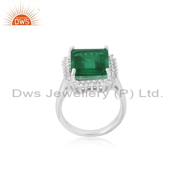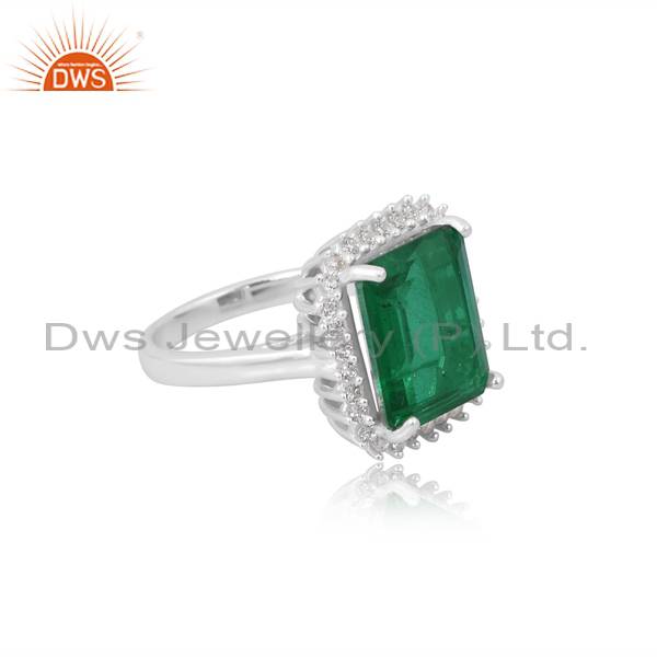 Handcrafted Cz & Doublet Emerald Quartz Silver Ring