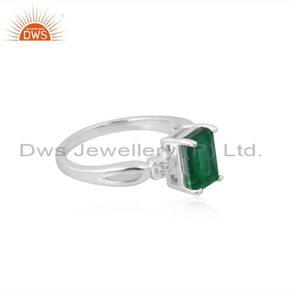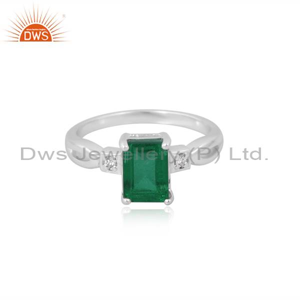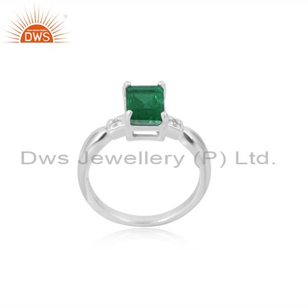 Handcrafted Cz & Zambian Emerald Quartz Ring - Unique Design