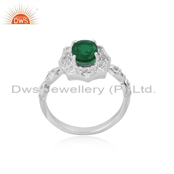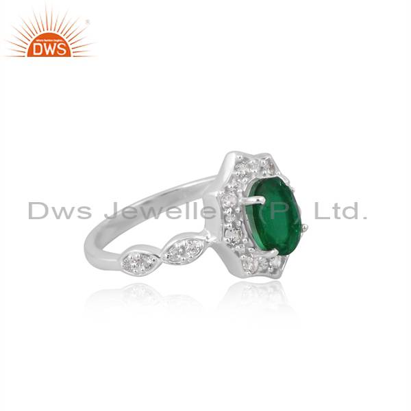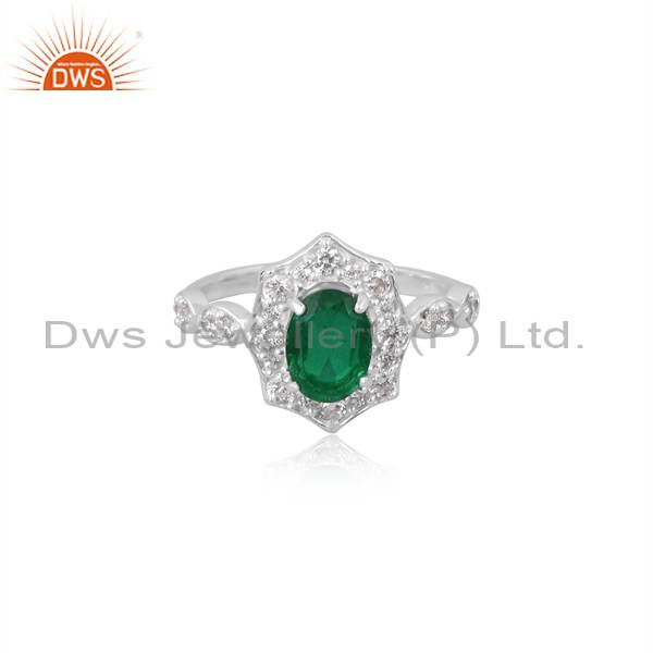 Handcrafted Cz Ring With Doublet Zambian Emerald Quartz