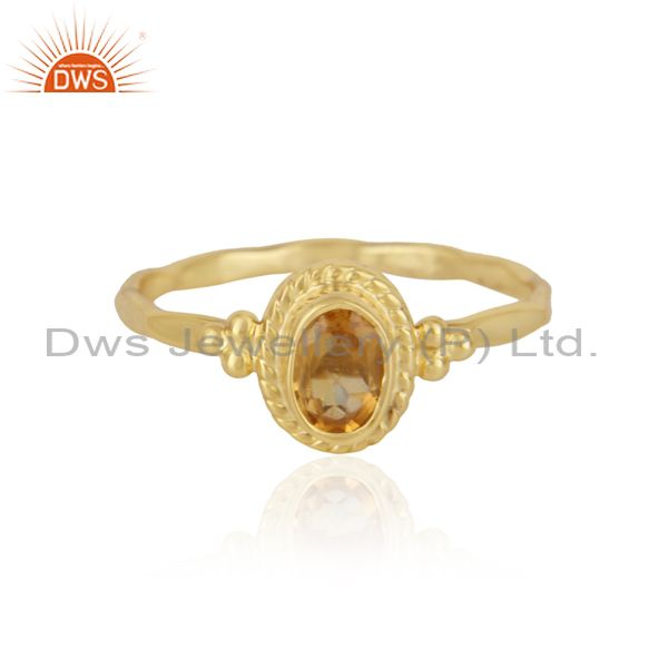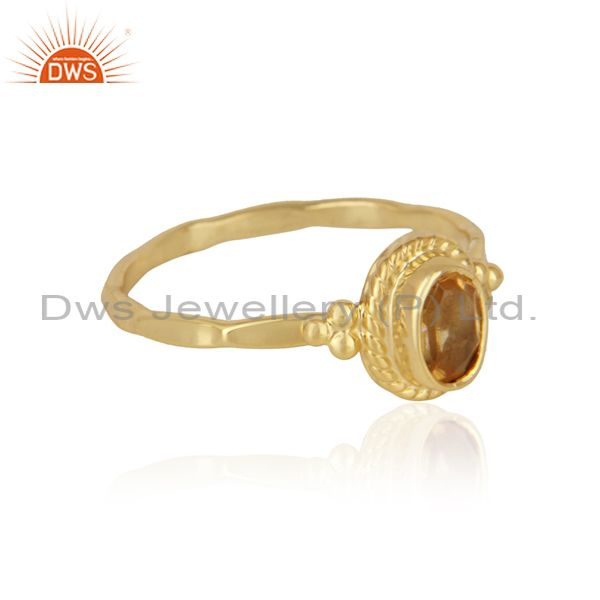 Handcrafted Dainty Ring in Yellow Gold on Silver 925 and Citrine
